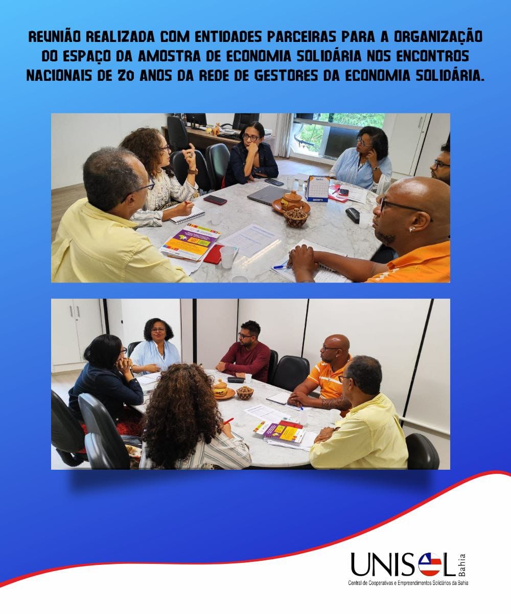 Hoje pela manhã, realizamos uma importante reunião com nossas entidades parceiras para dar início à organização do espaço da amostra de economia solidária no Encontro Nacional de 20 anos da Rede de Gestores da Economia Solidária! 🌱💼